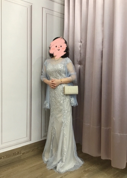 水藍色亮片蕾絲魚尾媽媽禮服 共有 3 則評價