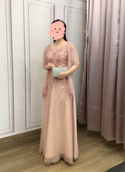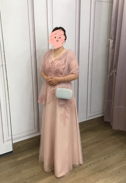 禮服風格高貴卻不老氣,顏色也很溫柔,讓媽媽穿起來氣質立刻提升