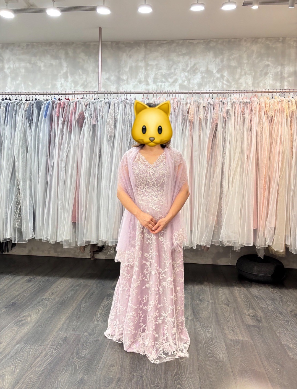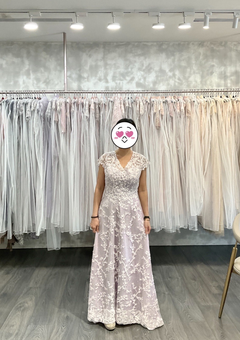 很多媽媽禮服對我嬌小的身形都不太友善,但這件銀紫色禮服剪裁超棒!穿起來非常修長、不顯矮。✨ 蕾絲花閃得很高級,搭配的披肩也恰到好處。讓我能在孩子的婚禮上,優雅大方又不失氣勢!大推!👍