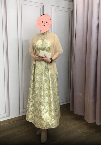果綠花紋刺繡削肩高領台中媽媽禮服 共有 1 則評價