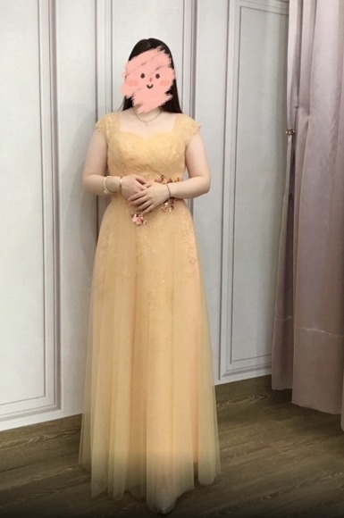 橙橘桃心領肩袖紗裙禮服 共有 1 則評價