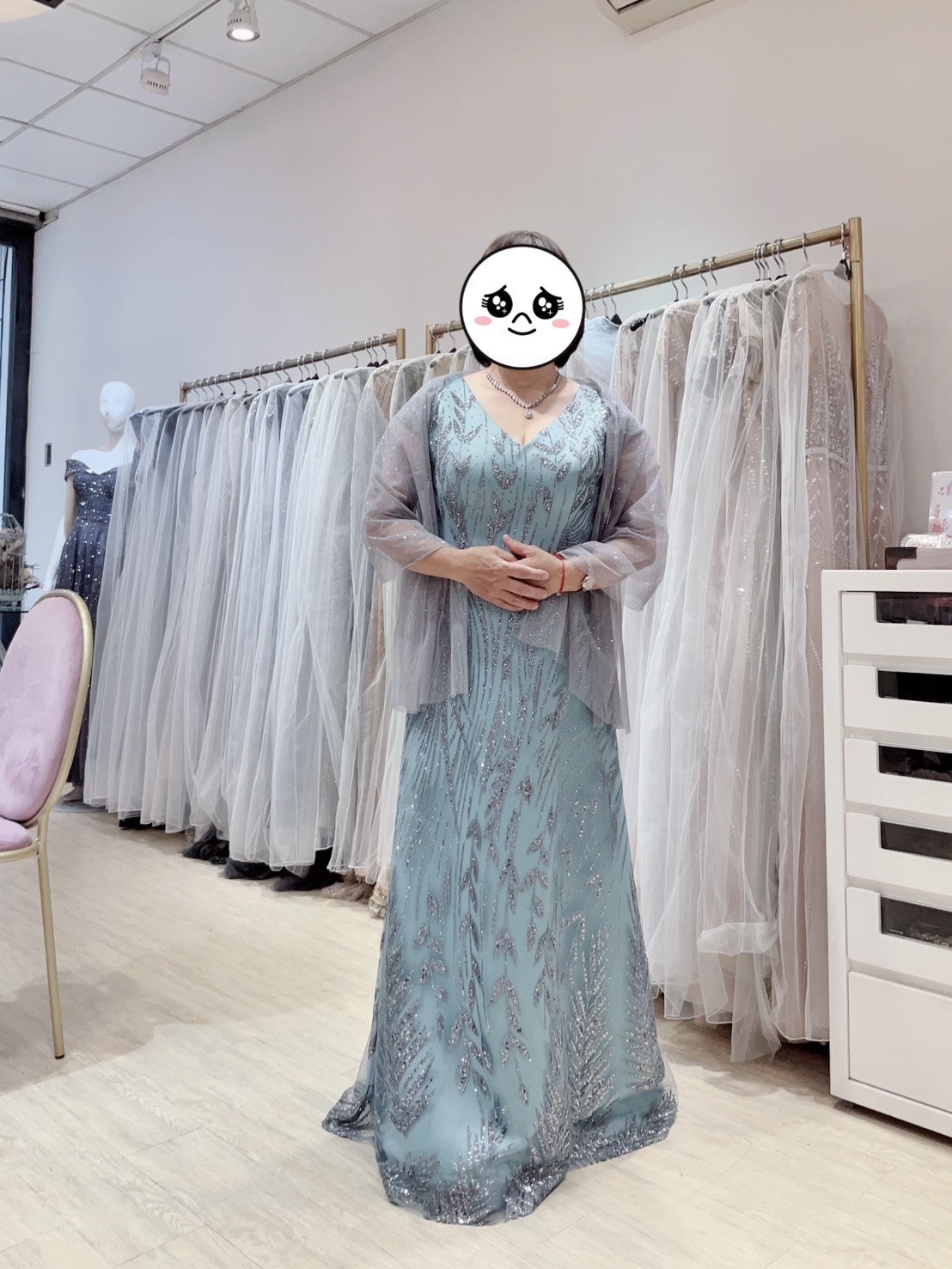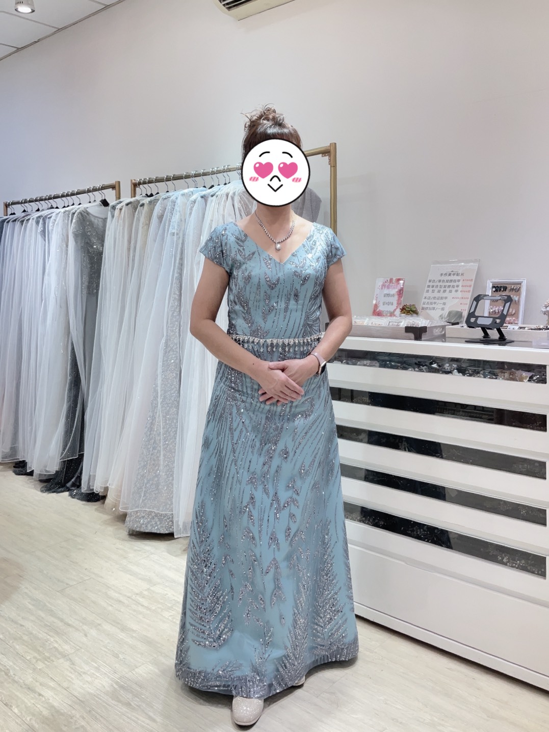 水藍亮片藤蔓花葉鑲鑽收腰禮服 共有 2 則評價