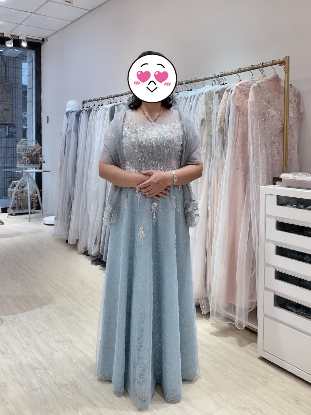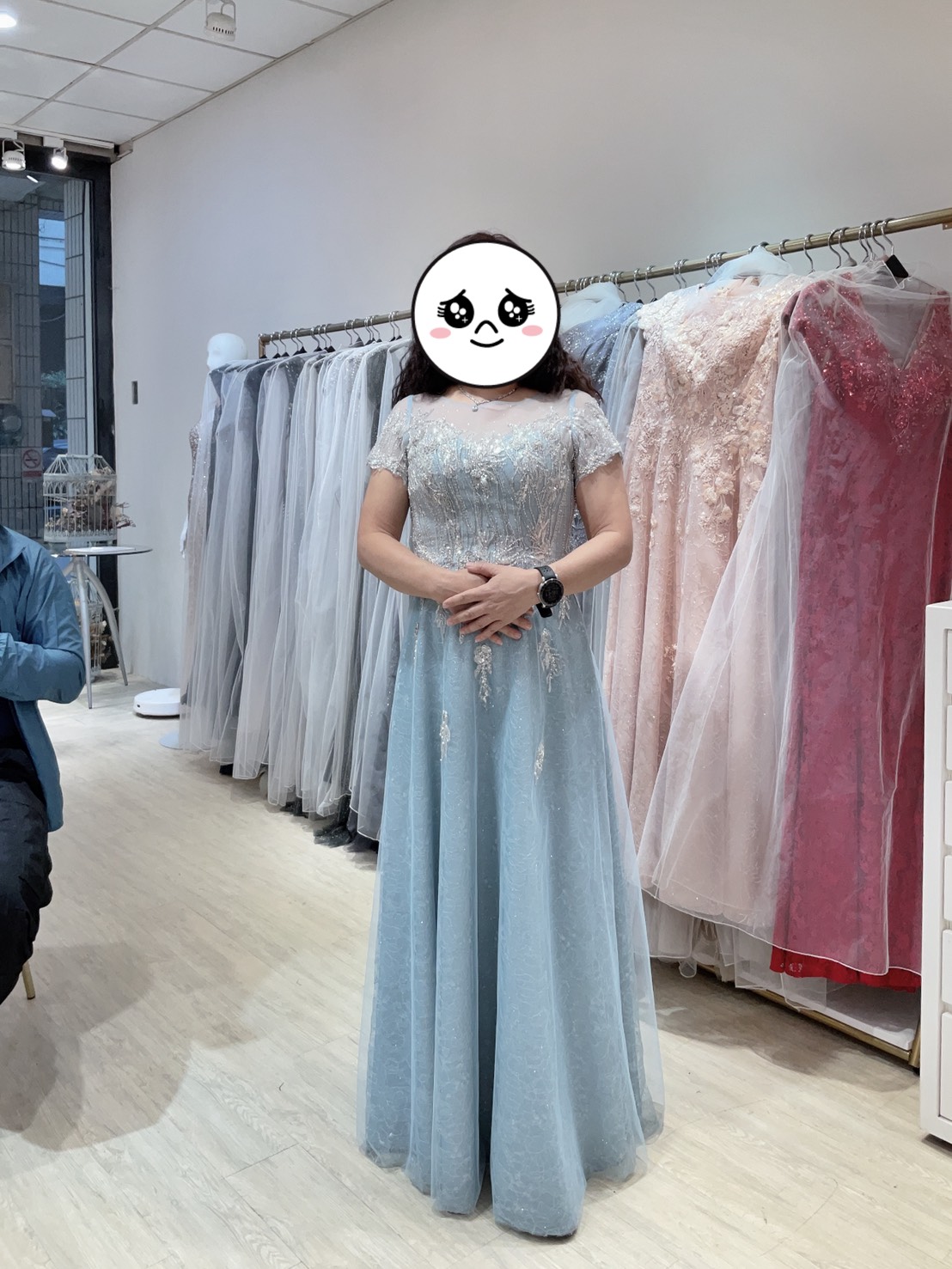 水藍管珠亮片花蕾絲紗裙禮服 共有 2 則評價