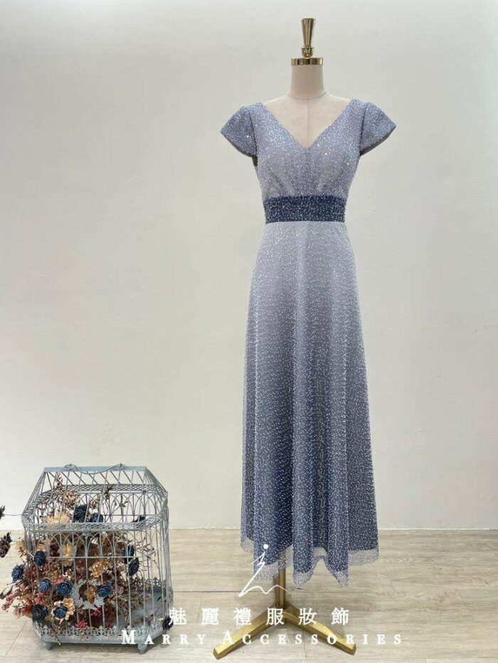 這款灰紫色滿版亮片收腰V領禮服是奢華和時尚的完美結合。