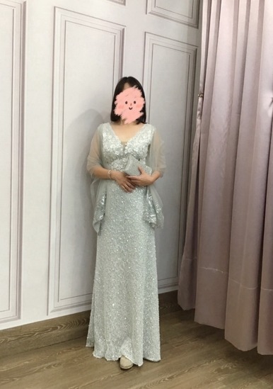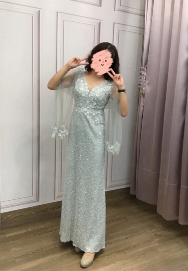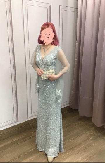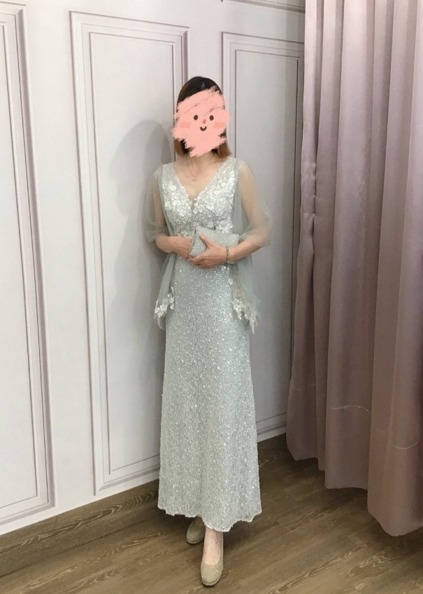 灰綠縫珠亮片花台中媽媽禮服 共有 5 則評價