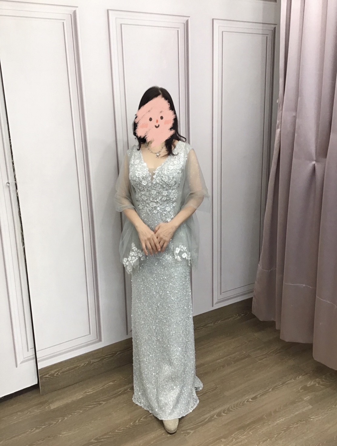 灰綠縫珠亮片花台中媽媽禮服