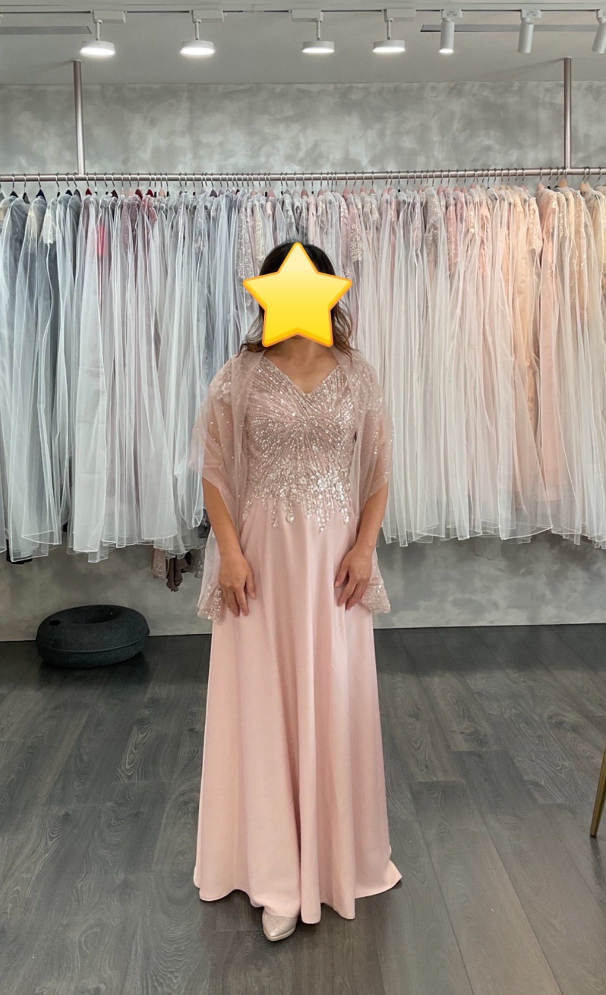 魅麗的禮服款式新穎且維持得很新。這款粉色蕾絲緞面裙既莊重又顯年輕,修改後的尺寸也非常合身,很滿意。👍