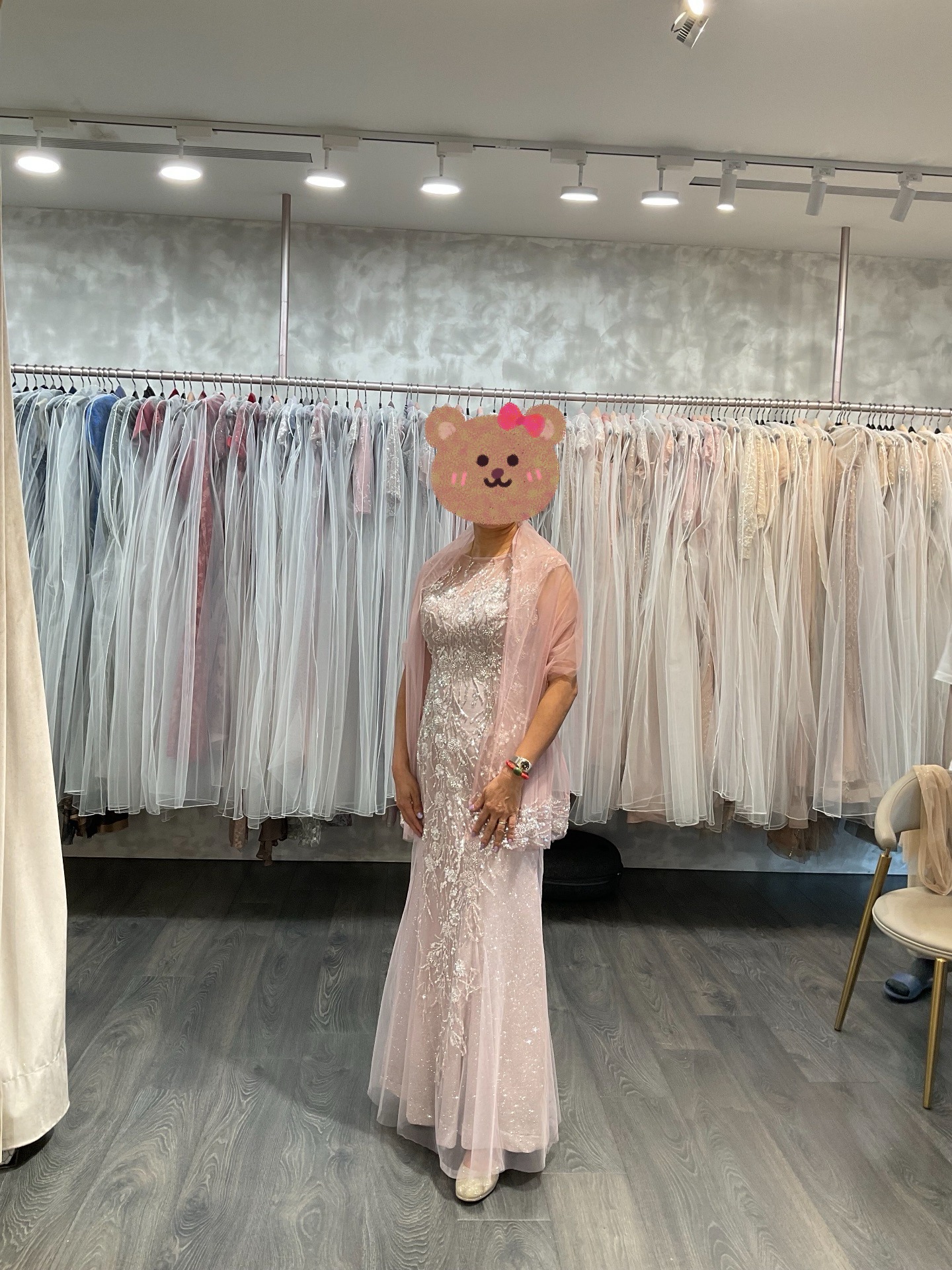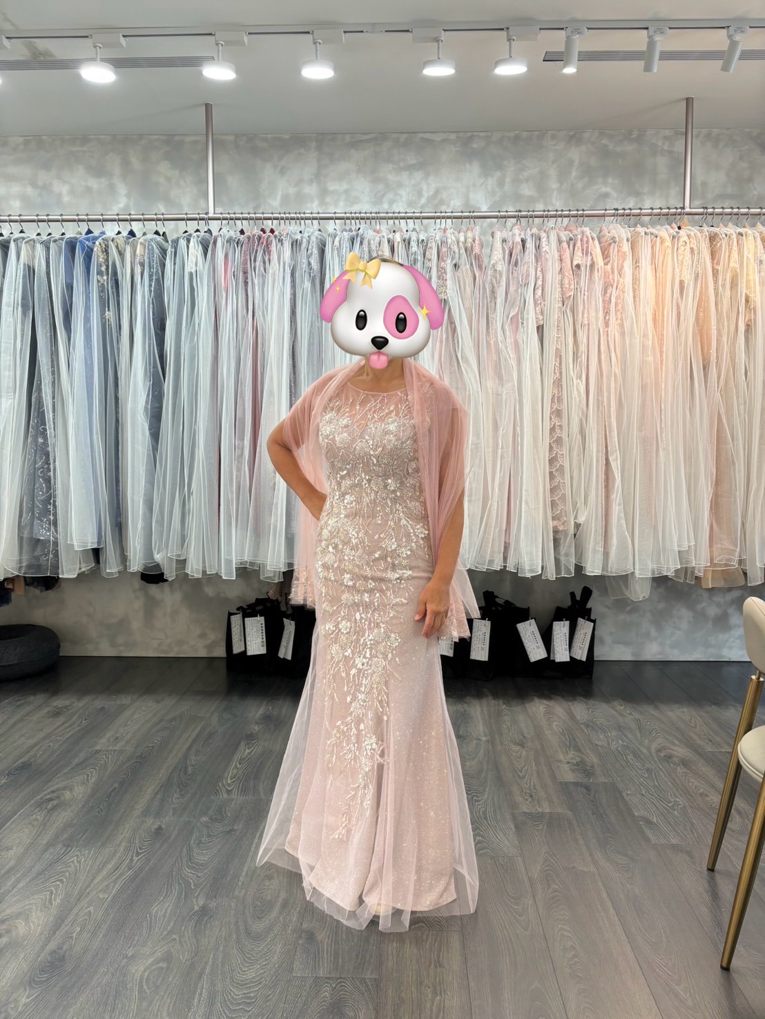 玫瑰粉珠花亮片藤蔓蕾絲紗裙魚尾禮服 共有 6 則評價