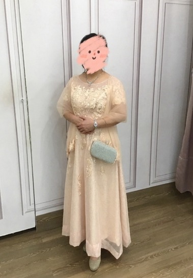 粉橘緹花蕾絲A字裙禮服 共有 7 則評價