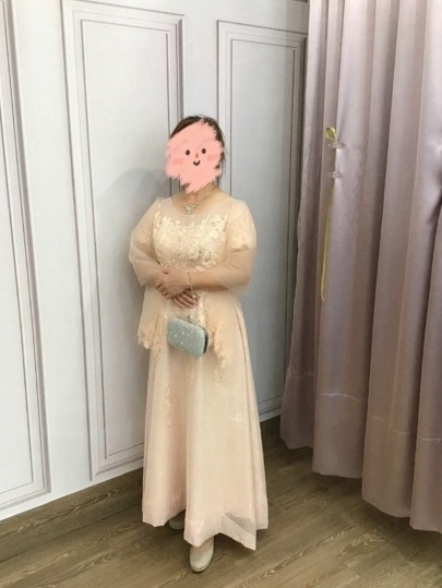 這件禮服的整體風格非常端莊大方,穿起來給人穩重又有質感