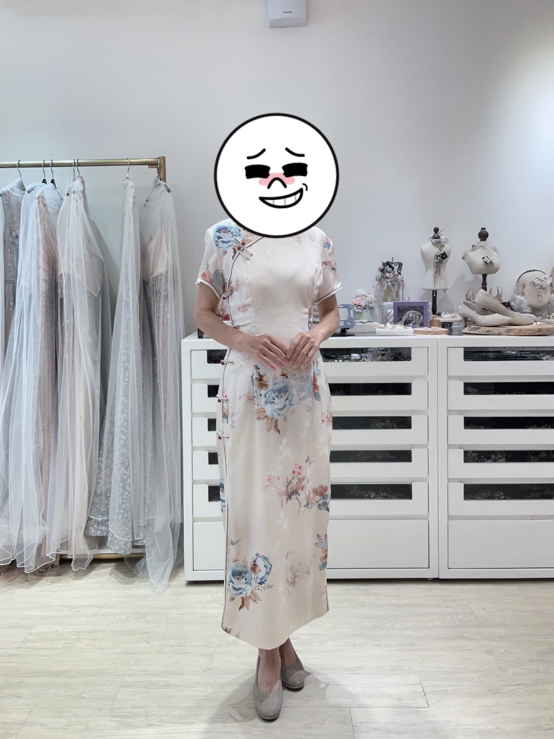 粉膚印花側排扣旗袍短媽媽禮服 共有 2 則評價