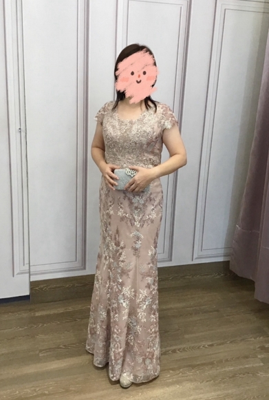 粉色刺繡圓領小包袖媽媽禮服 共有 4 則評價