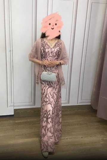 粉色大V領蝴蝶袖媽媽禮服 共有 3 則評價