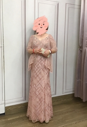 粉色珠工卡肩魚尾台中媽媽禮服 共有 1 則評價