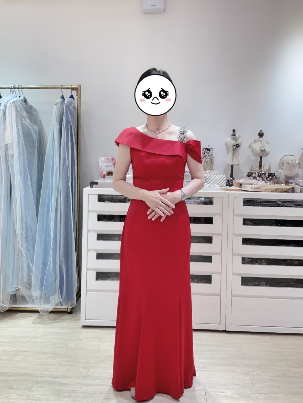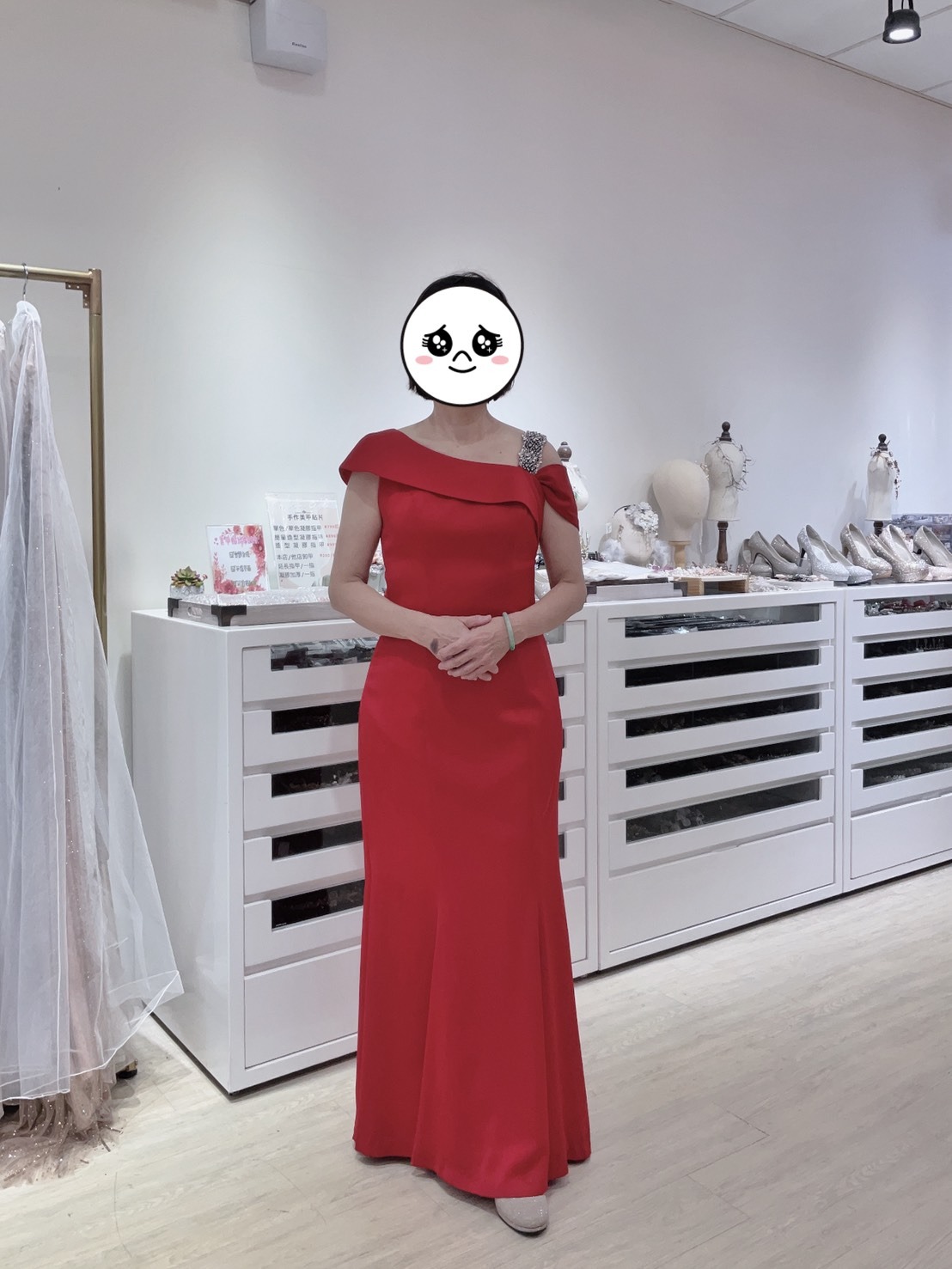 紅寶石絲絨卡肩排鑽肩帶魚尾禮服 共有 5 則評價