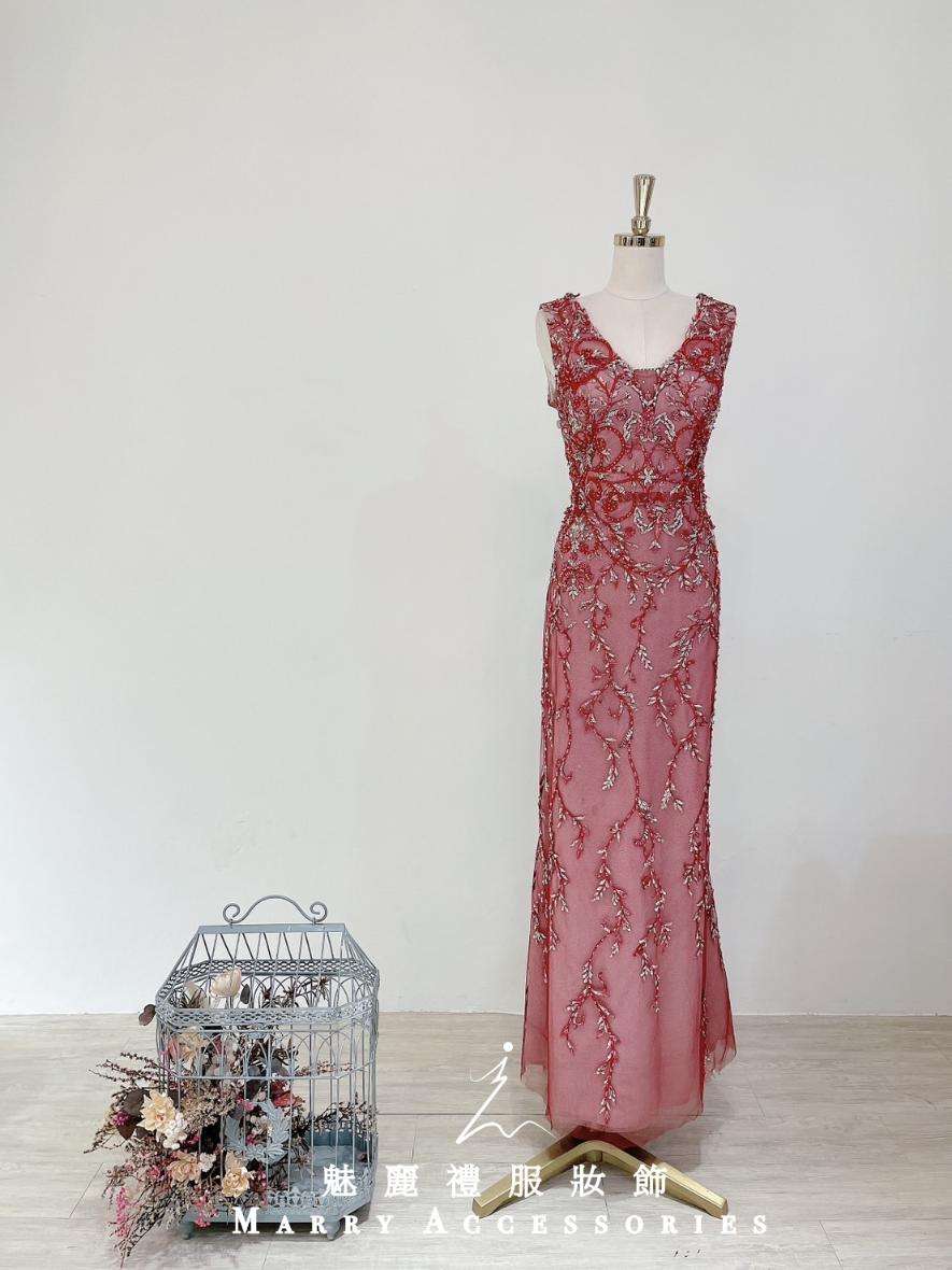 紅絲線細鑽亮片蕾絲媽媽禮服