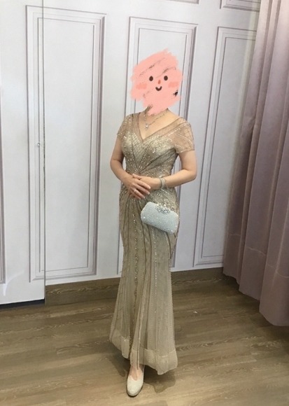 禮服剪裁修飾身形,風格依然端莊,感覺媽媽很喜歡