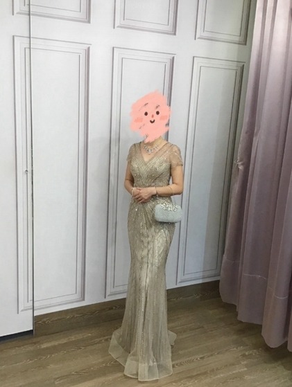 華麗滿鑽V領小包袖魚尾媽媽禮服 共有 4 則評價