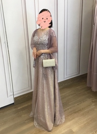 葡萄紫亮紗織花細珠A字裙禮服 共有 3 則評價