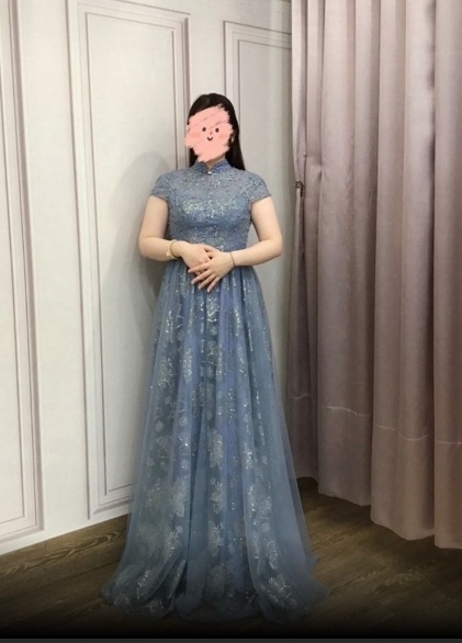 刺繡很細緻,近看更精緻,完全超出預期,真想把禮服直接穿回家。