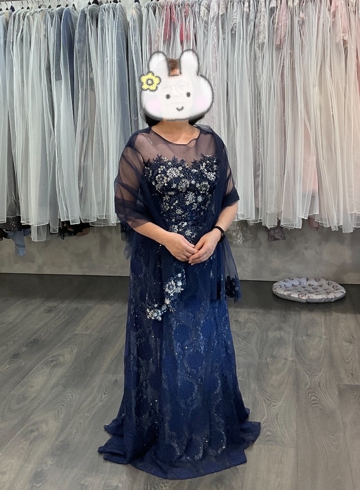 藏藍銀珠花蕾絲花紋魚尾禮服 共有 5 則評價