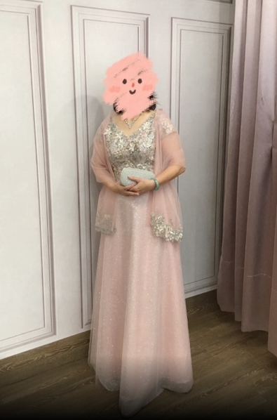 藕粉立體蝴蝶花亮紗A字裙禮服 共有 1 則評價