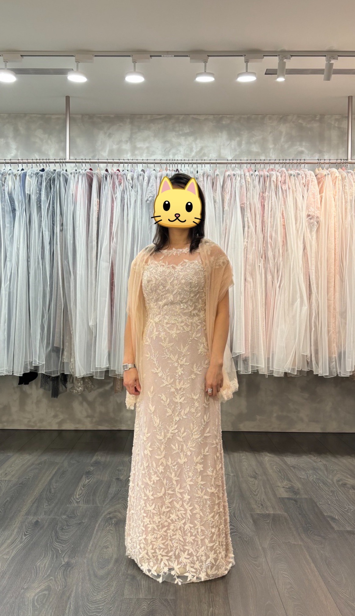 婚禮那天牽著女兒的手走紅毯,心裡滿是不捨與感動。謝謝魅麗推薦這件藕粉色蕾絲禮服,溫柔的色調讓我在致詞落淚時看起來依舊優雅。親友都誇這套直筒剪裁很顯氣質,讓我在孩子的重要時刻留下了最美回憶。💖