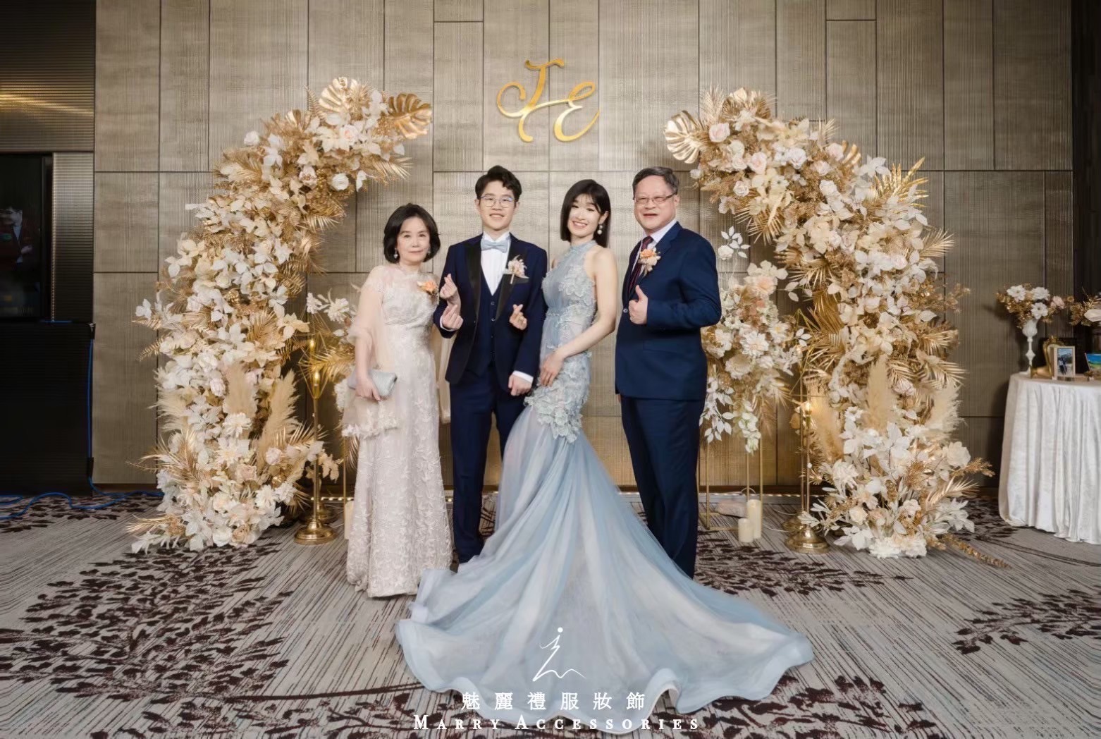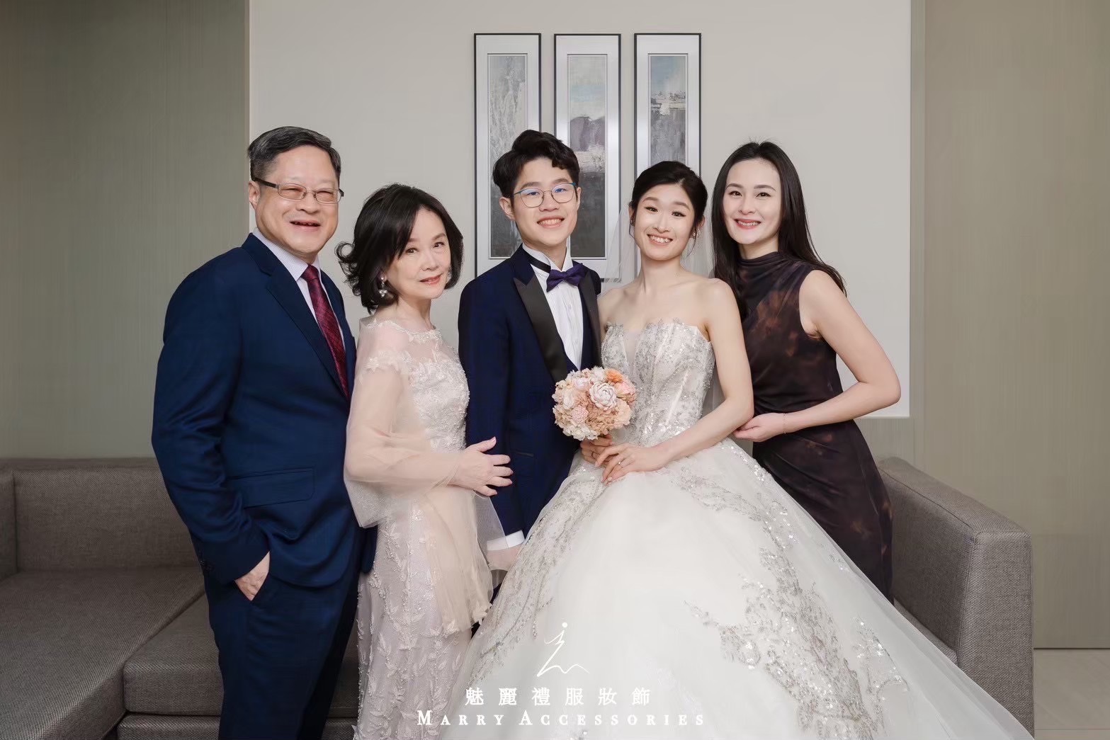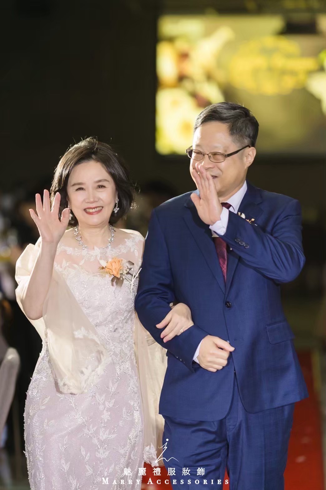 當主婚人最希望的就是大方得體,這件藕粉色直筒禮服幫我做到了。看著兒子在台上交換誓言,我在台下感動萬分。這套衣服在燈光下閃閃發亮,讓我感受到身為母親的驕傲與喜悅。謝謝魅麗的細心服務,讓這份感動更圓滿。😊
