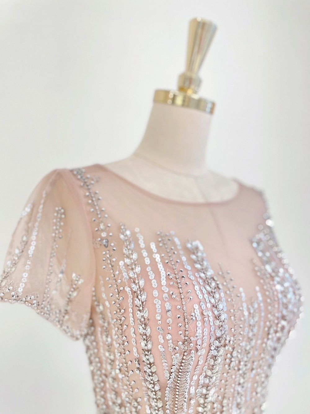 水晶排鑽的點綴使整個媽媽禮服更顯華麗奢華,散發著閃耀的光芒,無論是參加婚禮、晚宴還是宴會,這款媽媽禮服都能讓你成為場上最閃亮的焦點。