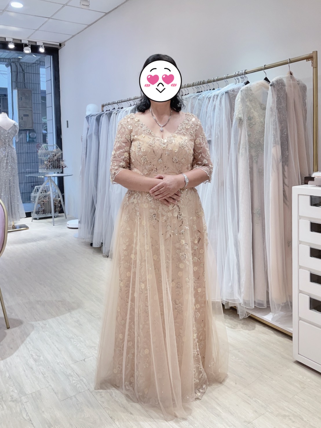服務非常貼心也很小姐很熱情,也很有耐心,推薦有禮服需求長輩可以來店裡看看