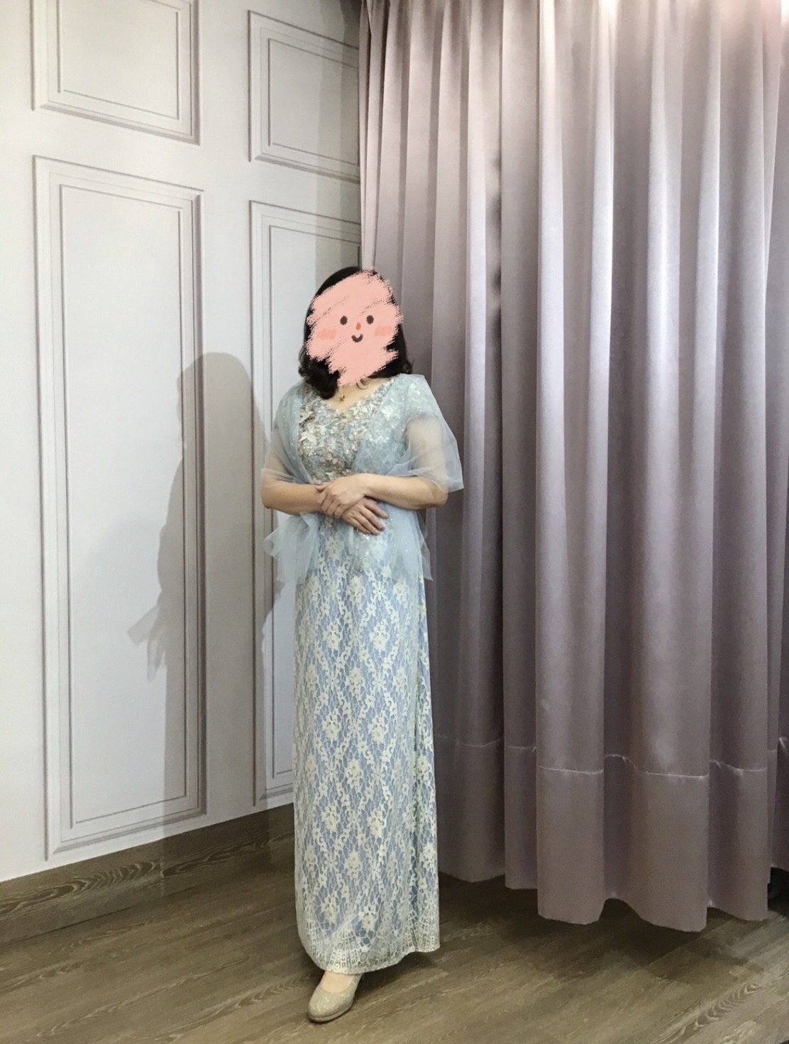 金紗蝴蝶花邊蕾絲藍紫禮服 共有 1 則評價