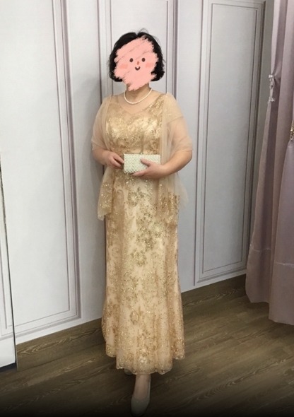 金色亮紗蕾絲花紋台中媽媽禮服 共有 1 則評價