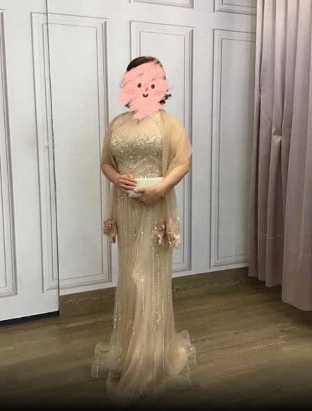 香檳粉金星芒狀水鑽削肩袖台中媽媽禮服 共有 1 則評價