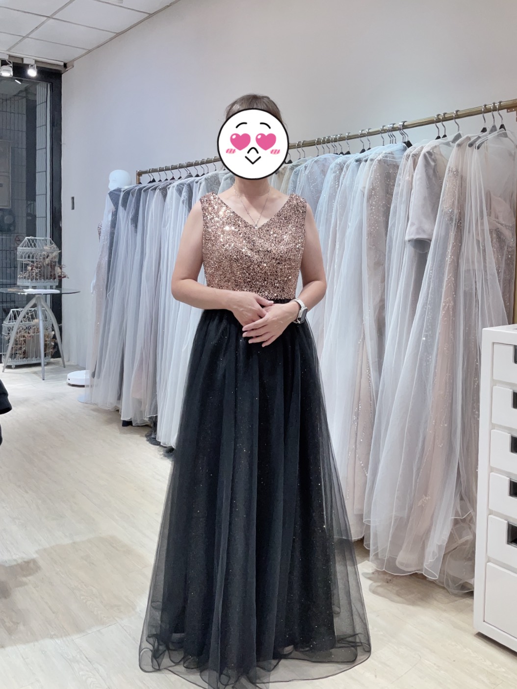香檳金亮片背心亮黑紗裙禮服 共有 2 則評價